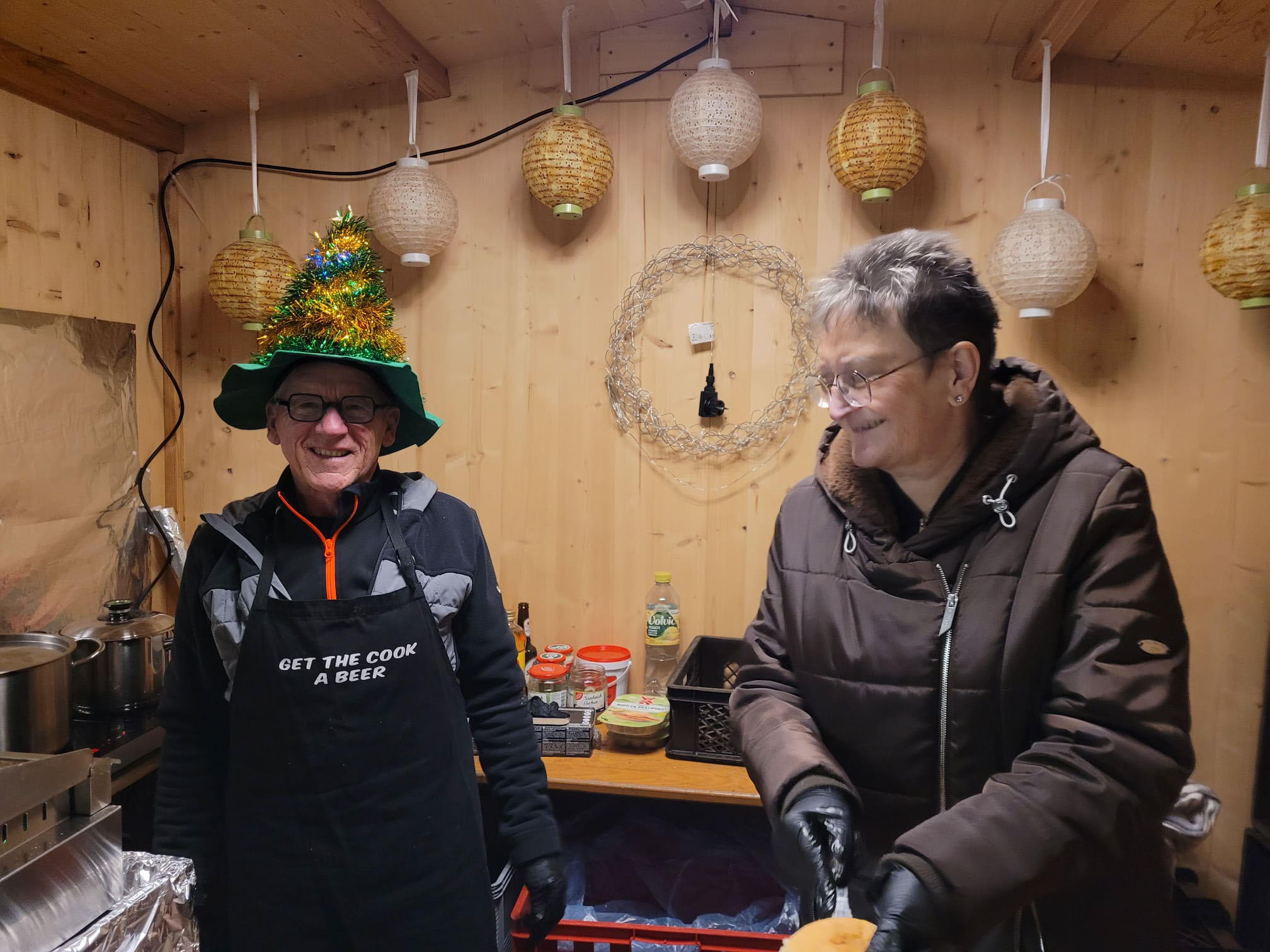 Vor und nach den Vorstellungen gibt es im romantischen Garten der Alten Post Glühwein, Knacker, Vegetarisches und Punsch zum Aufwärmen — denn die Kirche ist nicht beheizt.