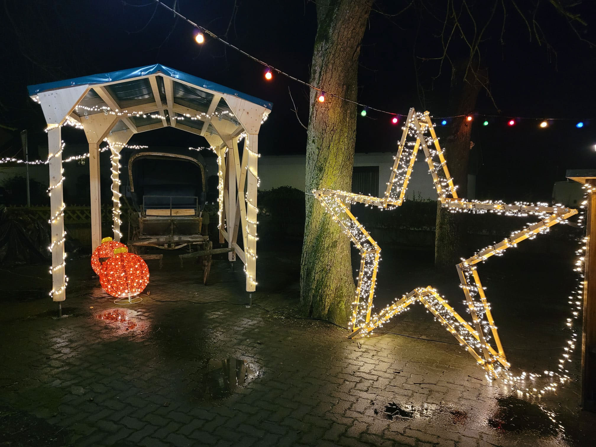 Vor und nach den Vorstellungen gibt es im romantischen Garten der Alten Post Glühwein, Knacker, Vegetarisches und Punsch zum Aufwärmen — denn die Kirche ist nicht beheizt.